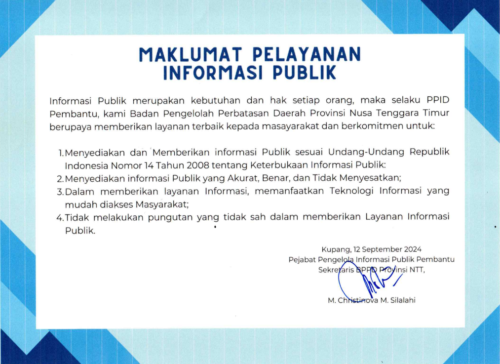 Maklumat Pelayanan PPID-P BPPD Provinsi NTT